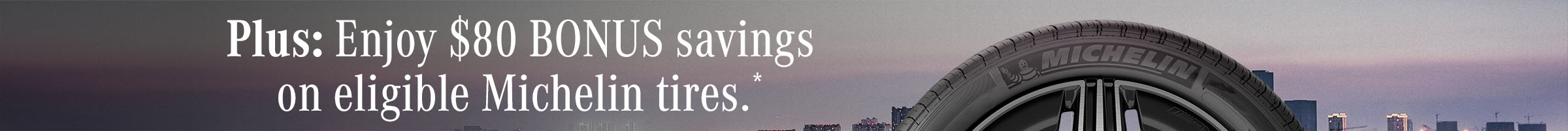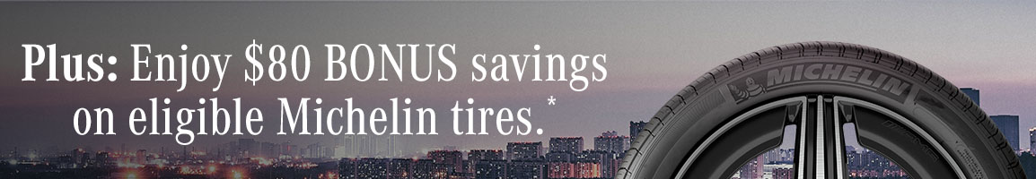 *Restrictions apply. Offer valid from September 1-October 31, 2025. See participating Mercedes-Benz dealers for complete details. Offer only valid on select OEM, OEC, OEA, OAC, WIC, and WIN replacement tires. Tires must be dealer-installed by November 7, 2025, to qualify for the offer. Taxes, installation, tire disposal, and other fees are separate and may apply for each tire. Excludes previous purchases. May be combined with select offers. Offer valid only for use on Mercedes-Benz passenger cars, Sprinters, Freightliner Sprinters or Metris. No cash value. Void where prohibited by law.